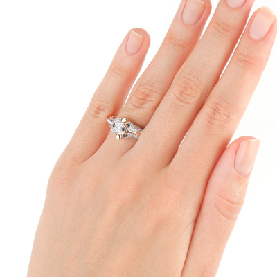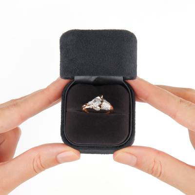 Кольцо с 70 бриллиантами природными, 0.34 карат, огранка круг 17 граней, цвет 2, чистота 2, тип огранки А; 6 бриллиантами черными природными облагороженными, 0.05 карат, огранка круг 57 граней, цвет 7, чистота 6, тип огранки А; 2 бриллиантами черными природными облагороженными, 0.009 карат, огранка круг 57 граней, цвет 7, чистота 6, тип огранки А; Розовое золото 585 пробы.