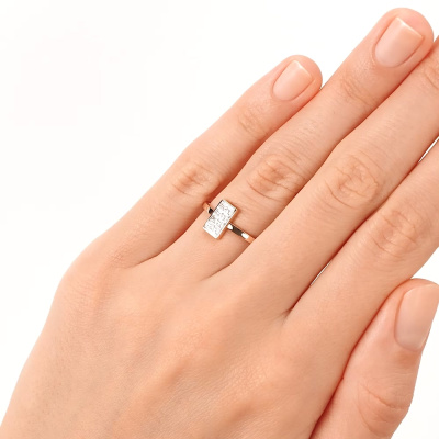 Кольцо с 8 бриллиантами природными, 0.01 карат, огранка круг 17 граней, цвет 2, чистота 2, тип огранки А; Розовое золото 585 пробы.