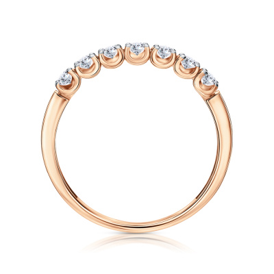 Кольцо с 7 бриллиантами выращенными, 0.19 карат, огранка круг 57 граней, цвет 3, чистота 5, тип огранки А; Розовое золото 585 пробы.