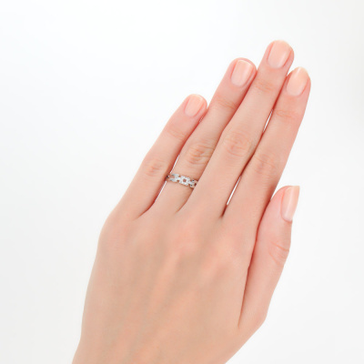 Кольцо с 12 бриллиантами природными, 0.05 карат, огранка круг 17 граней, цвет 2, чистота 2, тип огранки А; Белое золото 375 пробы.
