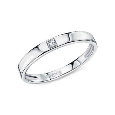 Кольцо с 1 бриллиантом природным, 0.01 карат, огранка круг 57 граней, цвет 4, чистота 5, тип огранки А; Белое золото 375 пробы.