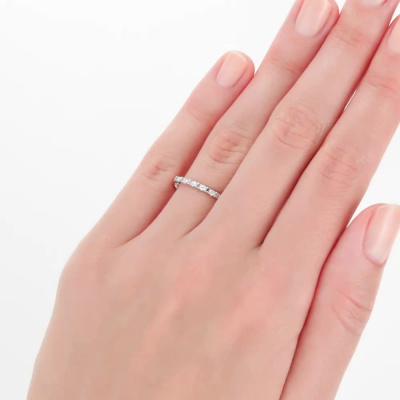 Кольцо с 7 бриллиантами природными, 0.09 карат, огранка круг 57 граней, цвет 4, чистота 5, тип огранки А; Белое золото 375 пробы.