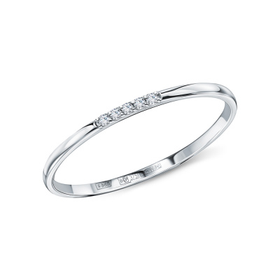 Кольцо с 5 бриллиантами природными, 0.02 карат, огранка круг 17 граней, цвет 2, чистота 2, тип огранки А; Белое золото 375 пробы.