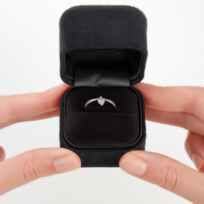Кольцо с 3 бриллиантами природными, 0.02 карат, огранка круг 17 граней, цвет 2, чистота 2, тип огранки А; Белое золото 375 пробы.