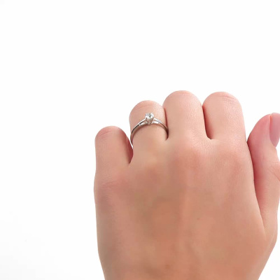 Кольцо с 1 бриллиантом выращенным, 0.26 карат, огранка круг 57 граней, цвет 3, чистота 5, тип огранки А; Белое золото 585 пробы.