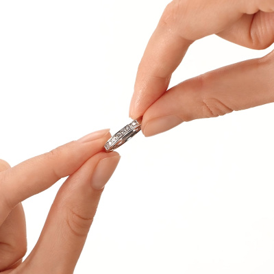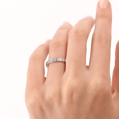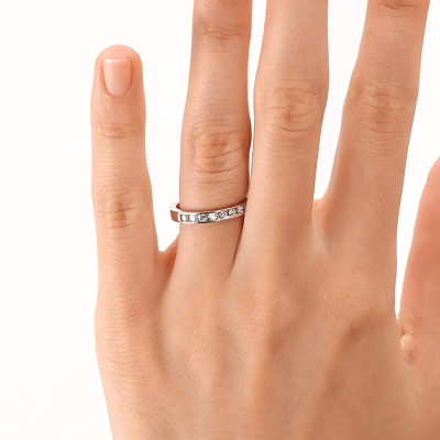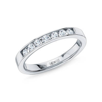 Кольцо с 7 бриллиантами выращенными, 0.21 карат, огранка круг 57 граней, цвет 3, чистота 5, тип огранки А; Белое золото 585 пробы.