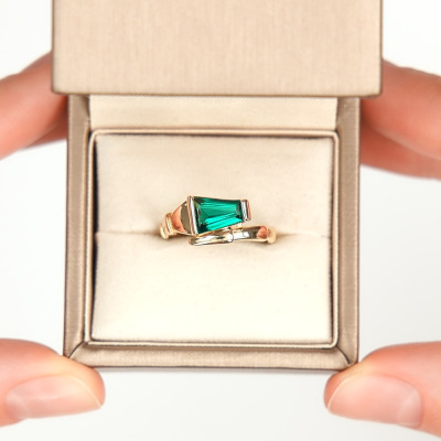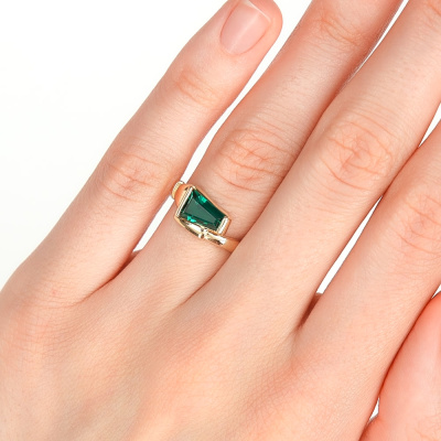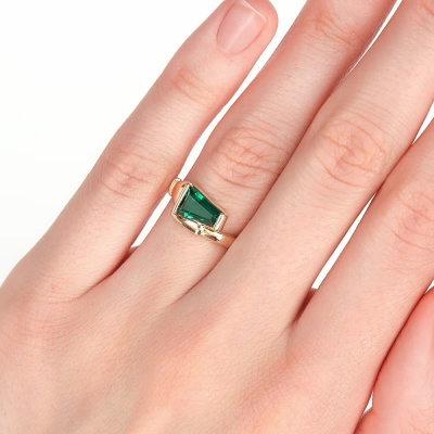 Кольцо с 1 ситаллом изумруд, 0.96 карат; Желтое золото 585 пробы.