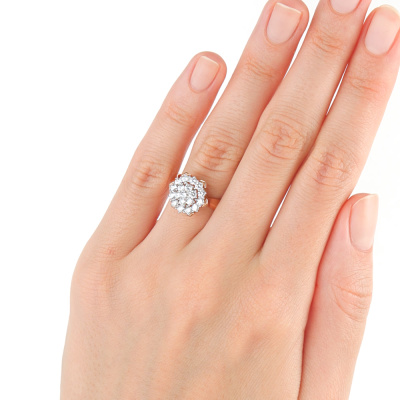 Кольцо с 19 бриллиантами природными, 0.32 карат, огранка круг 57 граней, цвет 3, чистота 6, тип огранки А; Розовое золото 585 пробы.