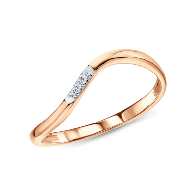 Кольцо с 3 бриллиантами природными, 0.01 карат, огранка круг 17 граней, цвет 2, чистота 2; Розовое золото 375 пробы.
