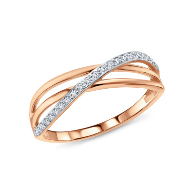 Кольцо с 21 бриллиантом природным, 0.09 карат, огранка круг 17 граней, цвет 2, чистота 2; Розовое золото 375 пробы.