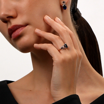Золотое кольцо с бриллиантами природными и сапфирами выращенными