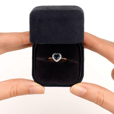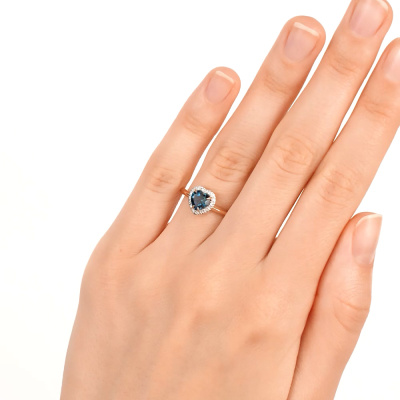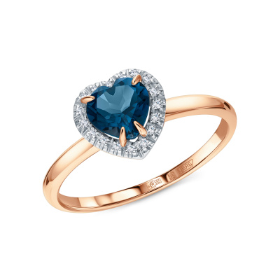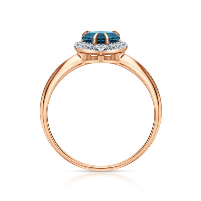 Кольцо с 17 бриллиантами природными, 0.05 карат, огранка круг 17 граней, цвет 2, чистота 2, тип огранки А; 1 топазом лондон природным, 0.93 карат; Розовое золото 585 пробы.