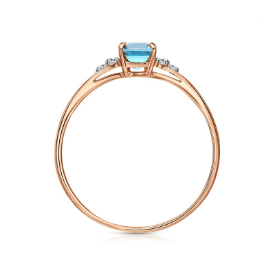 Кольцо с 6 бриллиантами природными, 0.03 карат, огранка круг 17 граней, цвет 2, чистота 2, тип огранки А; 1 топазом свисс природным, 0.39 карат; Розовое золото 585 пробы.