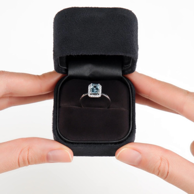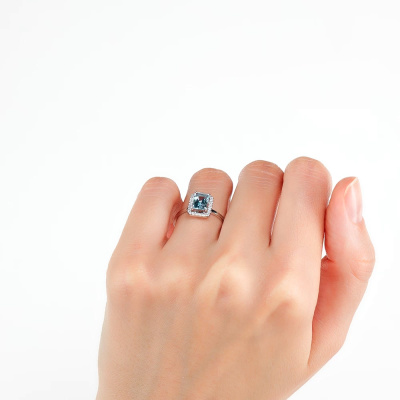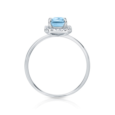 Кольцо с 24 бриллиантами природными, 0.1 карат, огранка круг 17 граней, цвет 2, чистота 2, тип огранки А; 1 топазом скай природным, 1.15 карат; Белое золото 585 пробы.