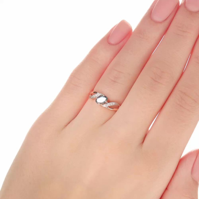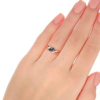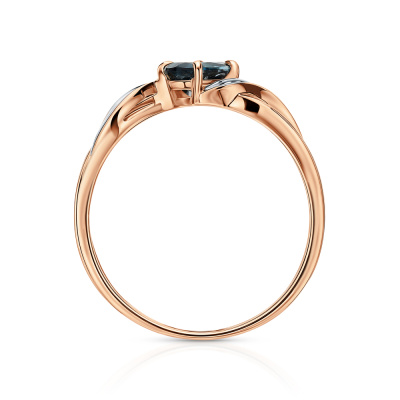Кольцо с 8 бриллиантами природными, 0.01 карат, огранка круг 17 граней, цвет 2, чистота 2, тип огранки А; 1 топазом лондон природным, 0.52 карат; Розовое золото 585 пробы.