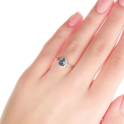 Кольцо с 13 бриллиантами природными, 0.05 карат, огранка круг 17 граней, цвет 2, чистота 2, тип огранки А; 1 топазом лондон природным, 0.75 карат; Белое золото 585 пробы.