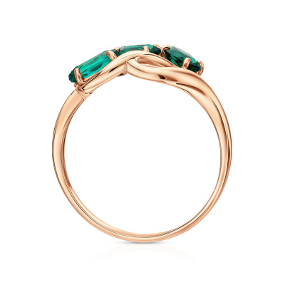 Кольцо с 3 гидротермальными изумрудами, 0.68 карат; Розовое золото 585 пробы.