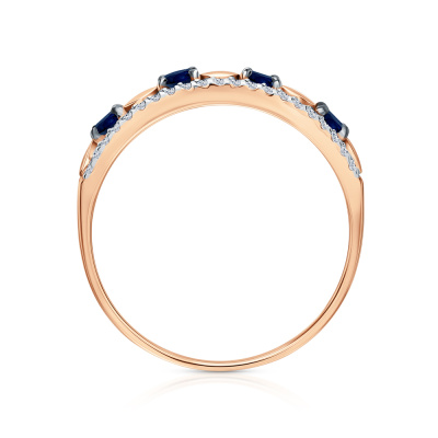Кольцо с 21 бриллиантом природным, 0.07 карат, огранка круг 17 граней, цвет 2, чистота 2, тип огранки А; 4 сапфирами природными, 0.37 карат, цвет 2, чистота 2, тип огранки В; Розовое золото 585 пробы.