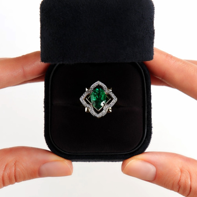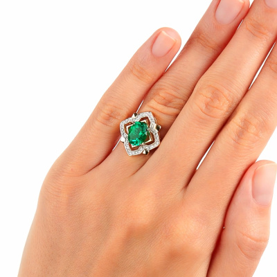 Золотое кольцо с бриллиантами природными и изумрудами выращенными