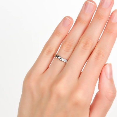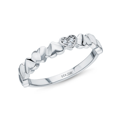 Кольцо с 3 бриллиантами природными, 0.01 карат, огранка круг 17 граней, цвет 3, чистота 3, тип огранки Б; Серебро 925 пробы.