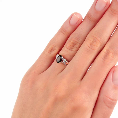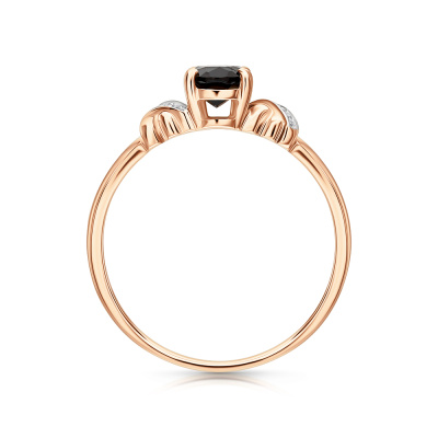 Кольцо с 10 бриллиантами природными, 0.02 карат, огранка круг 17 граней, цвет 2, чистота 2, тип огранки А; 1 гранатом природным, 0.92 карат; Розовое золото 585 пробы.