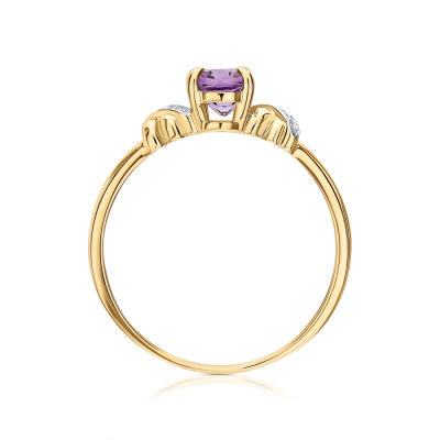 Кольцо с 10 бриллиантами природными, 0.02 карат, огранка круг 17 граней, цвет 2, чистота 2, тип огранки А; 1 аметистом природным, 0.7 карат; Желтое золото 585 пробы.