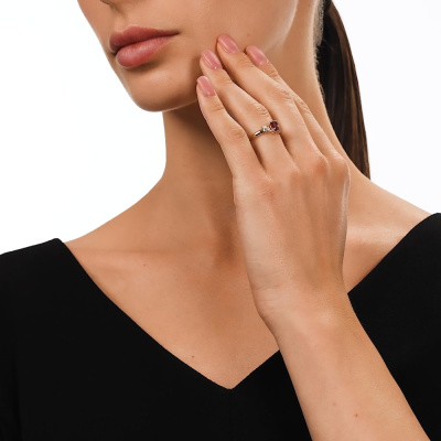 Золотое кольцо с бриллиантами природными и аметистами природными