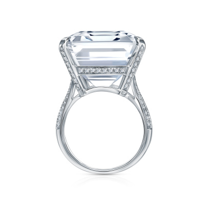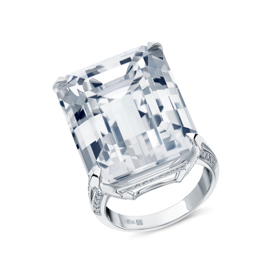 Кольцо с 104 бриллиантами природными, 0.33 карат, огранка круг 57 граней, цвет 3, чистота 5, тип огранки А; 1 топазом бесцветным природным, 53.97 карат, тип огранки В; Белое золото 585 пробы.