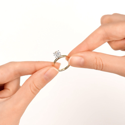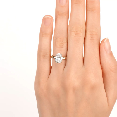 Кольцо с 1 бриллиантом выращенным, 2 карат, огранка овал 57 граней, цвет 4, чистота 5, тип огранки А; Желтое золото 585 пробы.