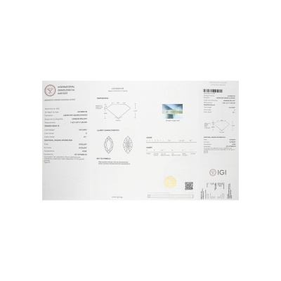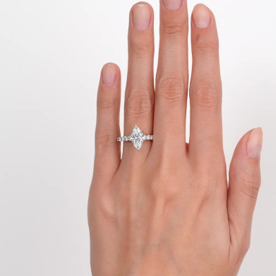 Кольцо с 1 бриллиантом выращенным, 1.53 карат, огранка маркиз 55 граней, цвет 4, чистота 5, тип огранки А; 2 бриллиантами выращенными, 0.17 карат, огранка круг 57 граней, цвет 3, чистота 5, тип огранки А; 2 бриллиантами выращенными, 0.12 карат, огранка круг 57 граней, цвет 3, чистота 5, тип огранки А; 2 бриллиантами выращенными, 0.09 карат, огранка круг 57 граней, цвет 3, чистота 5, тип огранки А; 2 бриллиантами выращенными, 0.06 карат, огранка круг 57 граней, цвет 3, чистота 5, тип огранки А; 2 бриллиантами выращенными, 0.04 карат, огранка круг 57 граней, цвет 3, чистота 5, тип огранки А; Белое золото 585 пробы.
