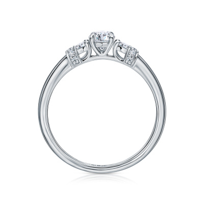 Кольцо с 1 бриллиантом выращенным, 0.3 карат, огранка круг 57 граней, цвет 4, чистота 5, тип огранки В; 2 бриллиантами выращенными, 0.08 карат, огранка круг 57 граней, цвет 3, чистота 5, тип огранки В; 10 бриллиантами выращенными, 0.04 карат, огранка круг 57 граней, цвет 3, чистота 5, тип огранки В; Белое золото 585 пробы.