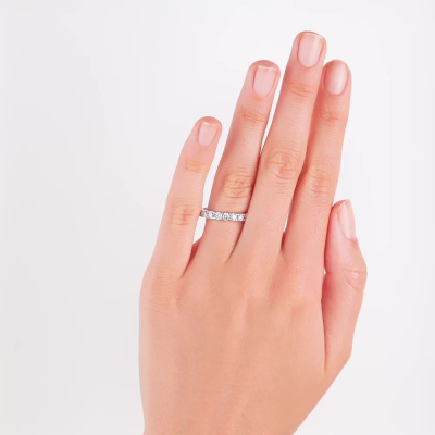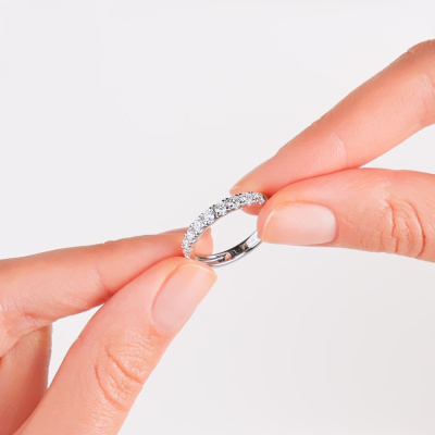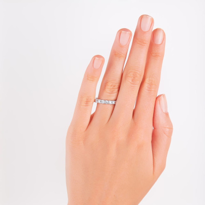 Кольцо с 9 бриллиантами выращенными, 0.74 карат, огранка круг 57 граней, цвет 3, чистота 5, тип огранки А; Белое золото 585 пробы.