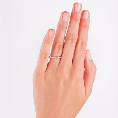 Кольцо с 11 бриллиантами выращенными, 0.55 карат, огранка круг 57 граней, цвет 3, чистота 5, тип огранки А; Белое золото 585 пробы.
