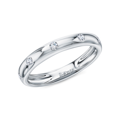 Кольцо с 5 бриллиантами выращенными, 0.15 карат, огранка круг 57 граней, цвет 3, чистота 5, тип огранки В; Белое золото 585 пробы.