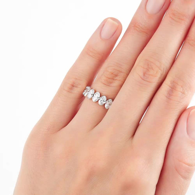 Кольцо с 7 бриллиантами выращенными, 1.33 карат, огранка овал 57 граней, цвет 3, чистота 5, тип огранки А; Белое золото 585 пробы.