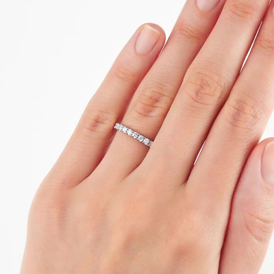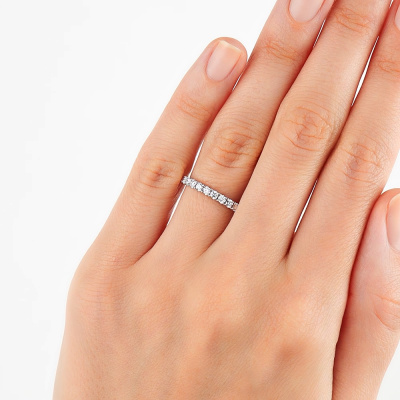 Кольцо с 13 бриллиантами выращенными, 0.39 карат, огранка круг 57 граней, цвет 3, чистота 5, тип огранки А; Белое золото 585 пробы.