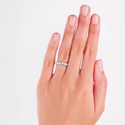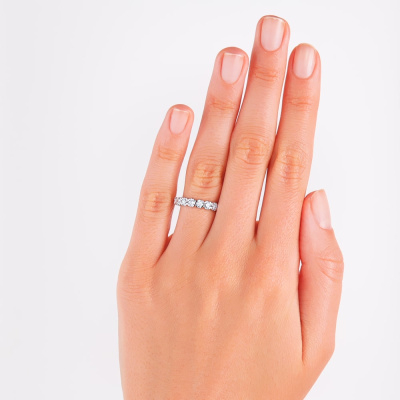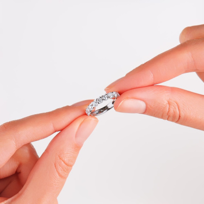 Кольцо с 9 бриллиантами выращенными, 0.77 карат, огранка круг 57 граней, цвет 3, чистота 5, тип огранки А; Белое золото 585 пробы.