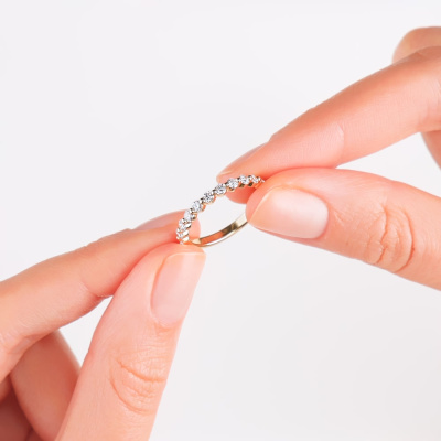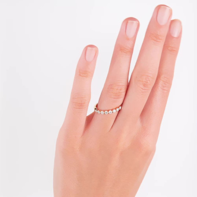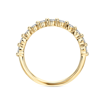 Кольцо с 11 бриллиантами выращенными, 0.55 карат, огранка круг 57 граней, цвет 3, чистота 5, тип огранки А; Желтое золото 585 пробы.
