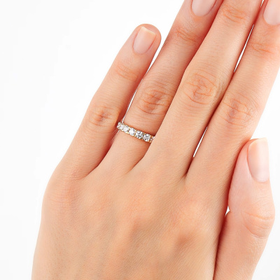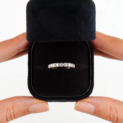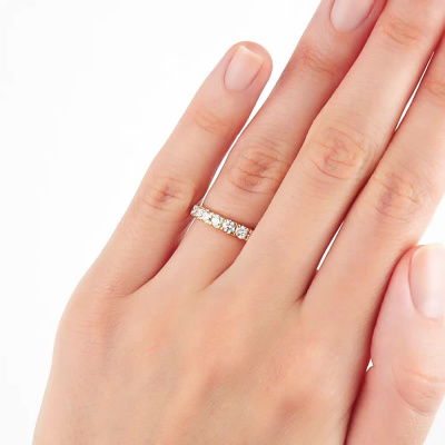 Кольцо с 9 бриллиантами выращенными, 0.67 карат, огранка круг 57 граней, цвет 3, чистота 5, тип огранки А; Желтое золото 585 пробы.