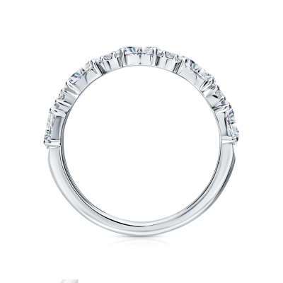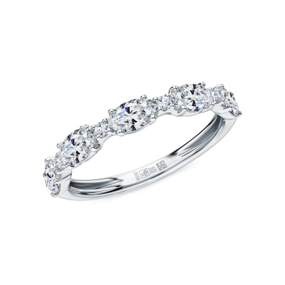 Кольцо с 5 бриллиантами выращенными, 0.95 карат, огранка овал 57 граней, цвет 3, чистота 5, тип огранки А; 4 бриллиантами выращенными, 0.05 карат, огранка круг 57 граней, цвет 3, чистота 5, тип огранки А; Белое золото 585 пробы.