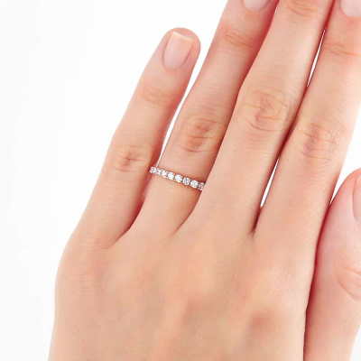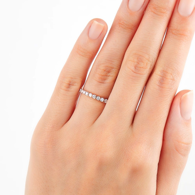 Кольцо с 13 бриллиантами выращенными, 0.4 карат, огранка круг 57 граней, цвет 3, чистота 5, тип огранки А; Розовое золото 585 пробы.