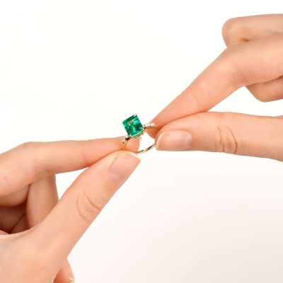 Золотое кольцо с бриллиантами выращенными и изумрудами выращенными