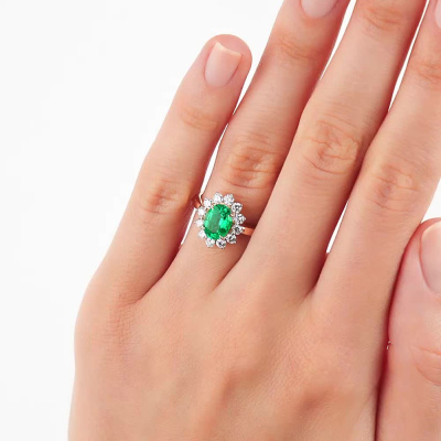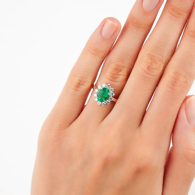 Золотое кольцо с бриллиантами выращенными и изумрудами выращенными