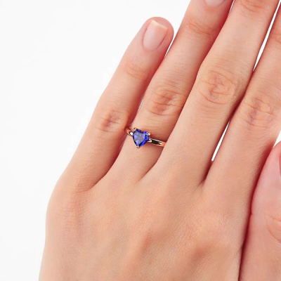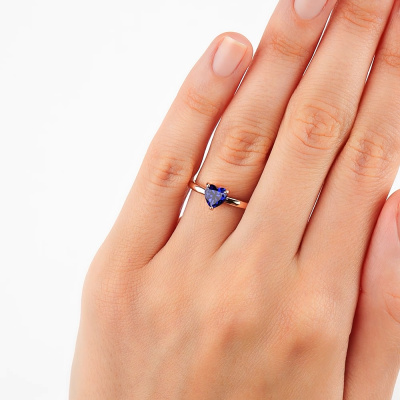 Кольцо с 1 сапфиром выращенным, 1.01 карат; Розовое золото 585 пробы.