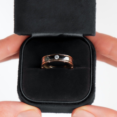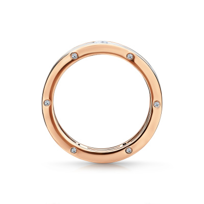 Кольцо с 1 бриллиантом природным, 0.07 карат, огранка круг 57 граней, цвет 3, чистота 6, тип огранки А; 12 бриллиантами природными, 0.02 карат, огранка круг 17 граней, цвет 2, чистота 2, тип огранки А; Розовое и белое золото 585 пробы.