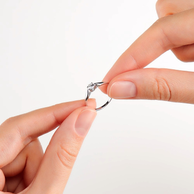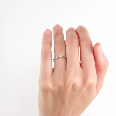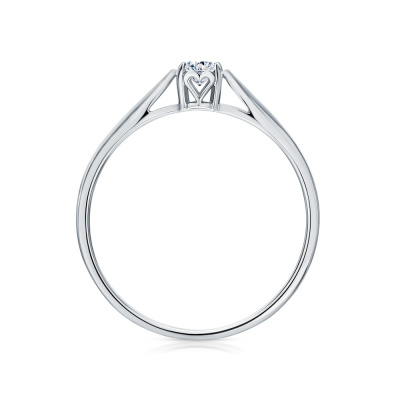 Кольцо с 1 бриллиантом выращенным, 0.1 карат, огранка круг 57 граней, цвет 3, чистота 5, тип огранки А; Белое золото 585 пробы.