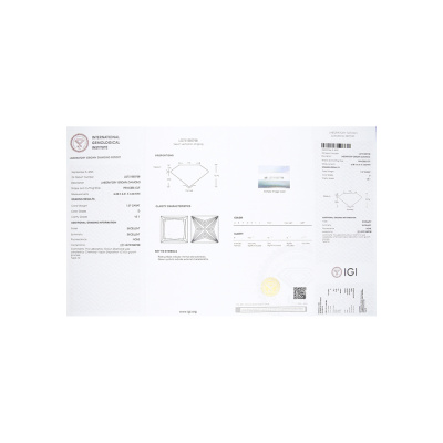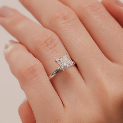 Кольцо с 1 бриллиантом выращенным, 1.53 карат, огранка принцесса 65 граней, цвет 4, чистота 5, тип огранки А; Белое золото 585 пробы.