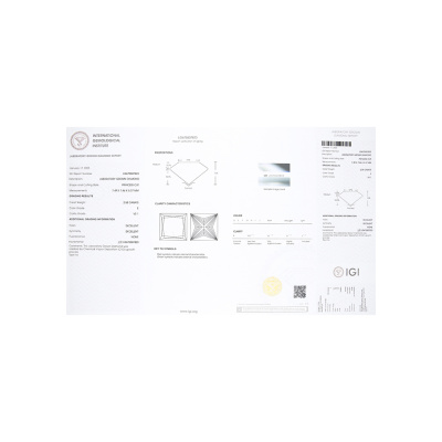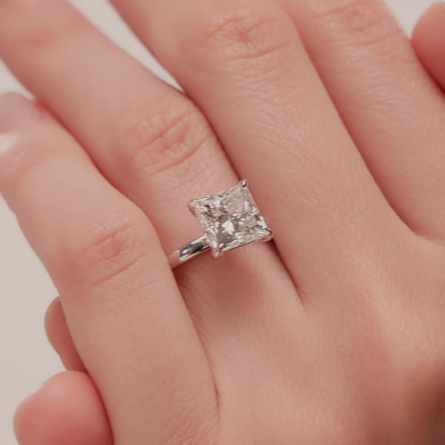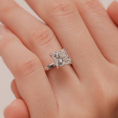 Кольцо с 1 бриллиантом выращенным, 2.56 карат, огранка принцесса 65 граней, цвет 4, чистота 5, тип огранки А; Белое золото 585 пробы.