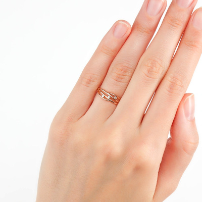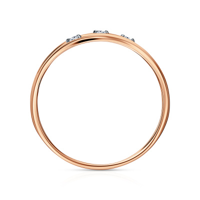 Кольцо с 3 бриллиантами природными, 0.02 карат, огранка круг 17 граней, цвет 2, чистота 2, тип огранки А; Розовое золото 375 пробы.