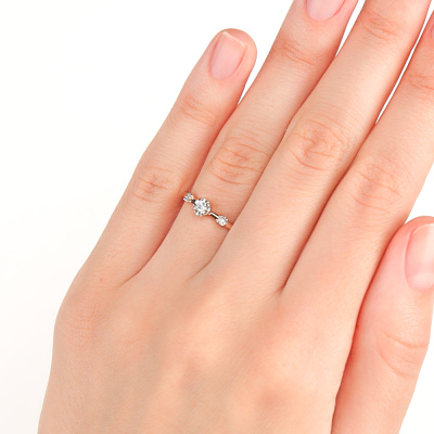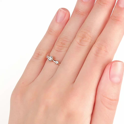 Кольцо с 1 бриллиантом природным, 0.06 карат, огранка круг 57 граней, цвет 3, чистота 6, тип огранки А; 2 бриллиантами природными, 0.007 карат, огранка круг 17 граней, цвет 2, чистота 2, тип огранки А; Розовое и белое золото 585 пробы.